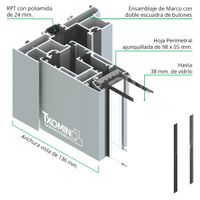 - Dimensiones base del sistema: Marco 128 mm | Hoja 57 mm.